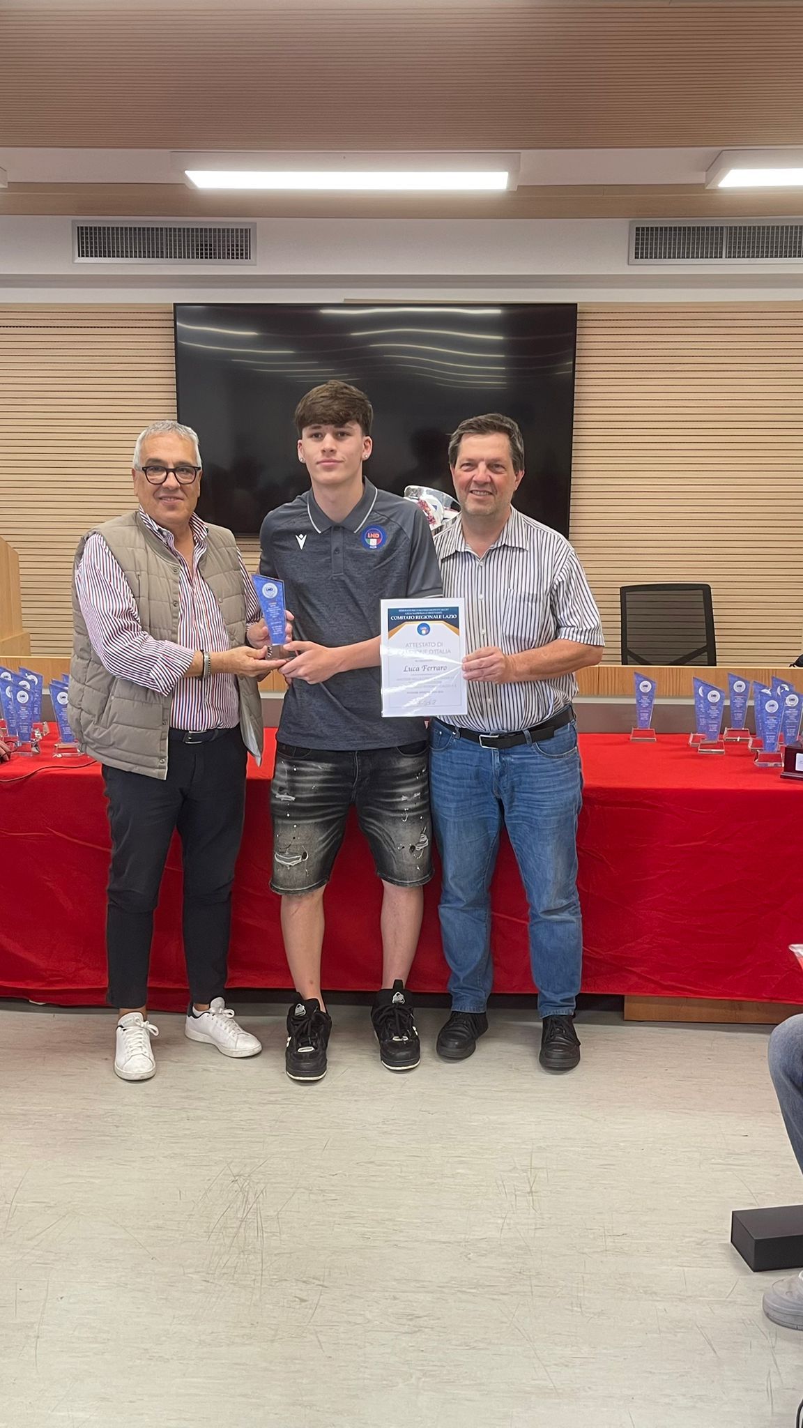 Insomma, è stato un crescendo rossiniano per Luca Ferraro che tanto per non farsi mancare nulla aveva partecipato ai raduni del Programma Futsal+ del Settore Giovanile e Scolastico (foto in gallery 2), vestendo la maglia della Rappresentativa Regionale del Lazio al Torneo delle Regioni che si è svolto a fine aprile in Emilia Romagna (foto in gallery 3), che lo ha visto trionfare con la selezione regionale (iun gallery 4 mentre viene premiato dal presidente Avvantaggiato e dal responsabile regionale Tosini). Ora la grande soddisfazione di vivere, non ancora sedicenne, la grande avventura con la Nazionale Under 19: e se come si dice, il buongiorno si vede dal mattino, per Luca Ferraro il resto della giornata sarà solo e solamente pieno di sole.