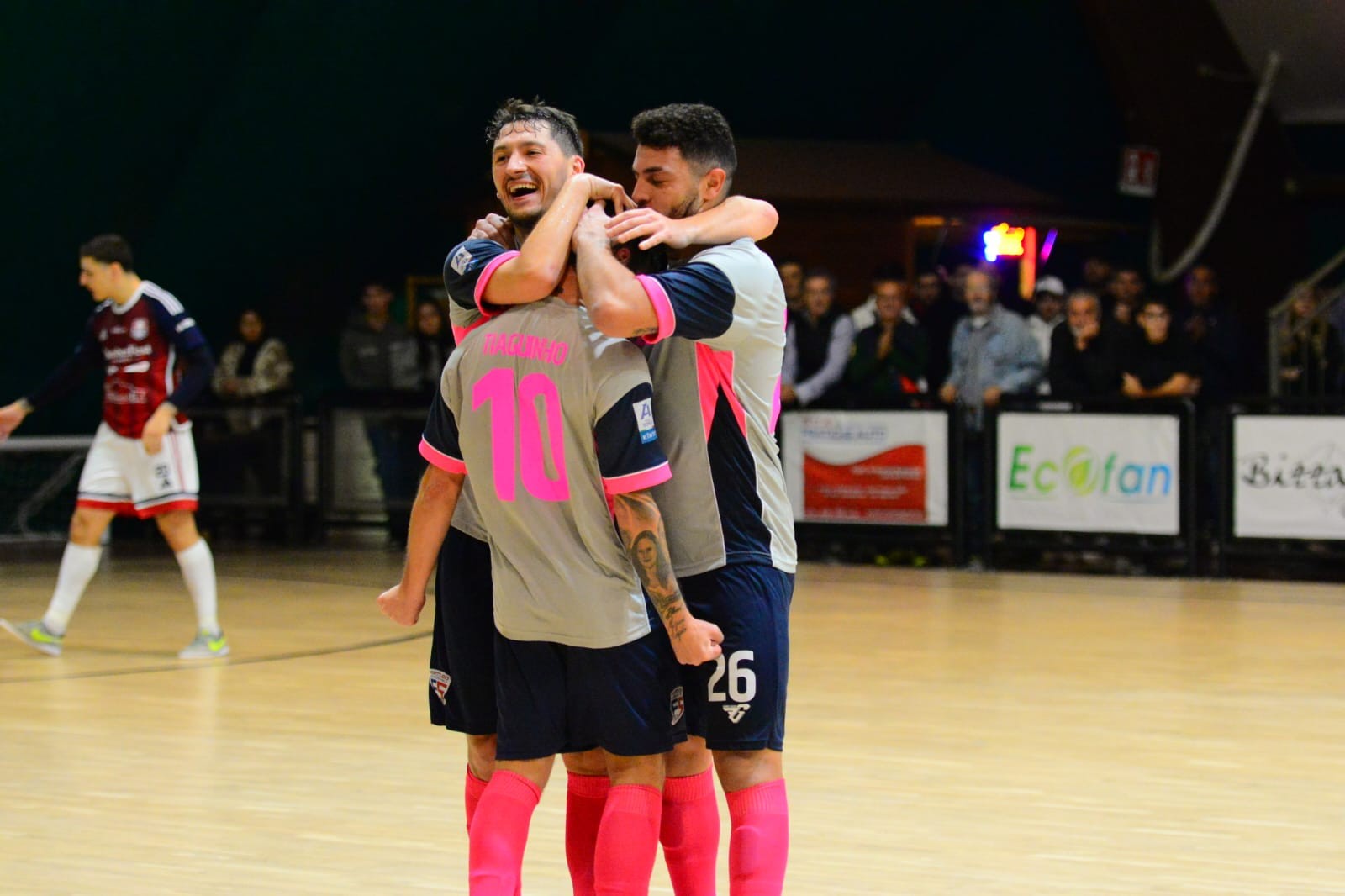 grandissime emozioni al Palalavinium, con la Fortitudo Pomezia che trascinata dal suo meraviglioso pubblico conquista altri tre punti pesantissimi per la propria classifica, superando per 4 – 3 una Pirossigeno Cosenza che ha venduto cara la pelle fino alla sirena.