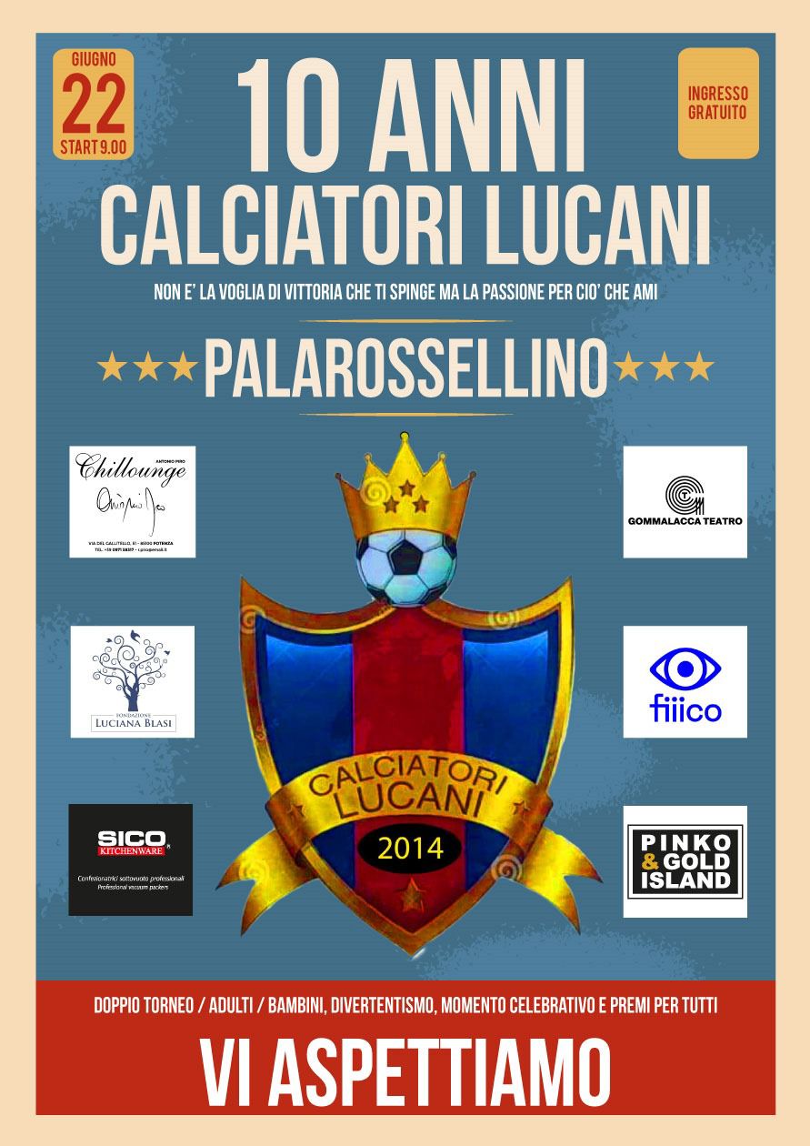 LA NOTA UFFICIALE - Sabato 22 giugno 2024 alle ore 9.00 il PalaRossellino di Potenza celebra i 10 anni dei Calciatori Lucani: realtà aggregativa fondata da Bruno Serrone con l’intento di ricostruire il rapporto umano tra amici storici e aprirsi a nuove conoscenze attraverso la passione per di calcio a 5. Nella giornata di festa, previsti doppi tornei con 4 squadre, rispettivamente riservate ad adulti e bambini, tanto divertentismo e consegna di premi per tutti. Spazio alla solidarietà con una raccolta fondi da destinare ad un degente presso l’Unità Operativa di Oncologia dell’IRCCS CROB di Rionero in Vulture. Previsto, tra gli altri, l’intervento di Letizia Serrone, oncologa potentina, ricercatrice a Roma, che ha pubblicato degli studi sull’impatto dei tumori in Basilicata. I Calciatori Lucani fin dalla loro fondazione portano avanti il motto “non è la voglia di vittoria che ti spinge ma la passione per ciò che ami”. Componenti fondamentali delle loro “sfide” sono la sana allegria e voglia di trasferire i valori dello sport alle nuove generazioni. L’ingresso è gratuito con invito a vivere pienamente lo spirito dell’evento oltre che a sostenere gli atleti in campo.