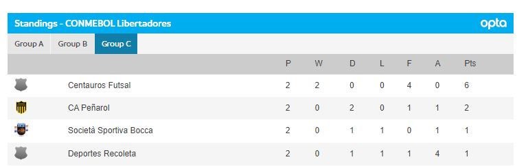 Vicinissimi alla meta anche il Cascavel e il Barracas Central. Nel gruppo C ha iniziato il torneo con due pareggi il Peñarol che è secondo con 2 punti, ma che deve guardarsi le spalle da Sportivo Bocca e Deportes Recoleta. Sarà decisiva l'ultima partita. IN GALLERIA 1 VEDI GLI ULTIMI RISULTATI