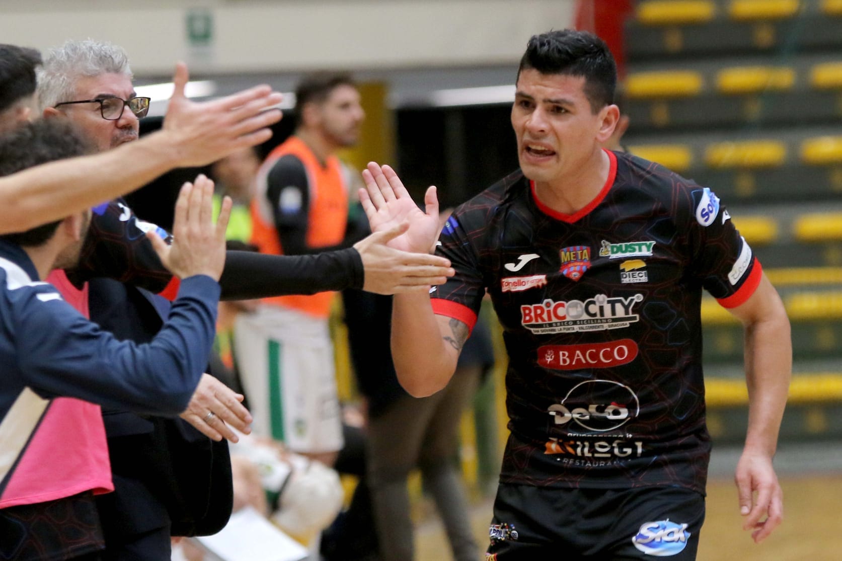 Al PalaCatania ancora il grande entusiasmo a trascinare Musumeci e compagni con i 1500 tifosi rossazzurri a spingere la squadra di Tarantino. Ancora occasioni una dietro l’altra fin dall’inizio con Alex Garcia e Vaporaki a sfiorare il vantaggio. L84 con Cuzzolino e Josiko però pescava il gol alla prima occasione mandando alle ortiche i piani della Meta Catania. I rossazzurri non si disunivano e ad inizio ripresa schiacciavano per dieci minuti la L84 nella propria metà campo. Alonso, Alex Garcia due volte e Vaporaki ancora sfioravano il meritato pareggio con la porta piemontese che appariva stregata. Rabbia e forza nel gol del pareggio grazie allo schema giusto, con Musumeci a pescare Bocão (un foto di galleria) sul secondo palo per il meritato 1-1. La partita a sette dalla fine diventava bellissima: L84 provava con i suoi giocatori di maggior talento Cuzzolino e Josiko a trovare il colpo del k.o. ma Dovara rispondeva presente con tre interventi salva risultato. A cinque dalla fine ecco il Power play per la Meta Catania che cercava la vittoria con l’uomo in più: occasioni clamorose ancora sui piedi di Garcia, Alonso e due volte con Musumeci ma il pallone veniva respinto da Tondi o usciva di poco buttando alle ortiche i tentativi etnei.