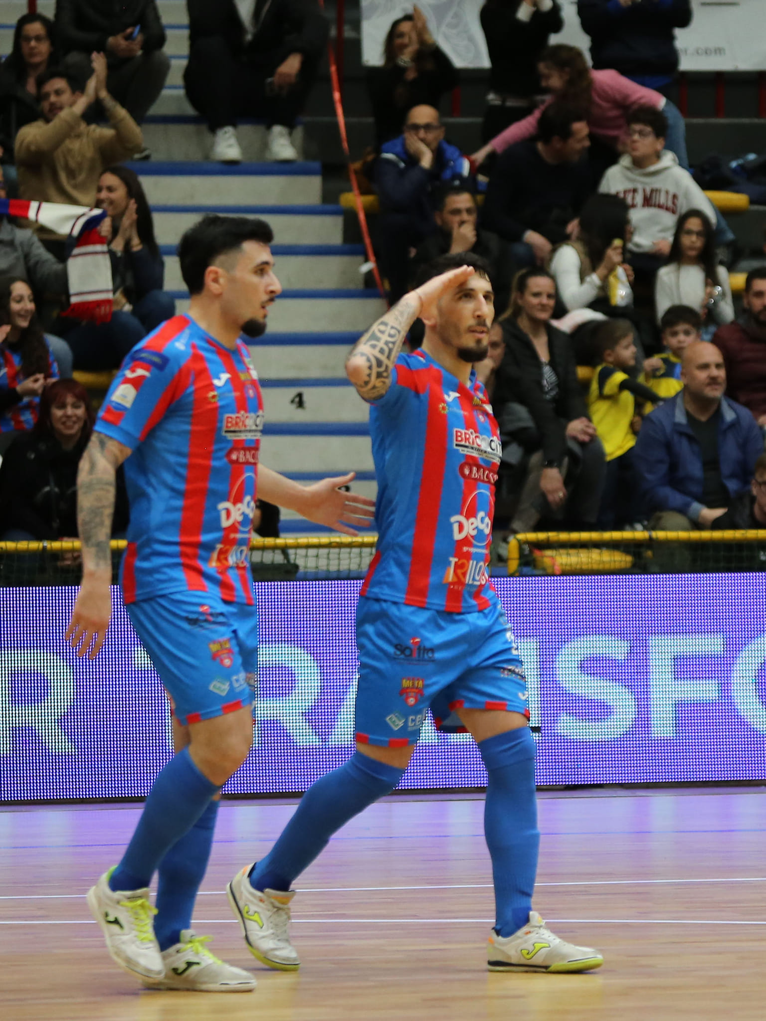 L’arbitro in maniera cinica invece tirava fuori il rosso a due minuti dalla fine che faceva esplodere di rabbia i giocatori in campo enil PalaCatania. Decisione incomprensibile con i seguenti gialli a raffica sulle proteste. Genzano aveva sul piatto d’argento la vittoria giocando due minuti per la seconda volta nello stesso periodo in superiorità numerica. La Meta Catania si cementava, Timm parava tutto e Dian Luka e Musumeci tenevano alto il possesso sul recupero fino alla sirena. Fischi assordanti del pubblico, dei 2500 per delle decisioni arbitrali che hanno frenato una Meta Catania dominante, che voleva e poteva vincere, ma oggi frenata dai rossi e dalla rabbia. Una grande festa che potrebbe essere l’antipasto dei playoff scudetto per una squadra quella di Juanra che si cementa sempre di più pronta per giocarsi le sue chance scudetto.
