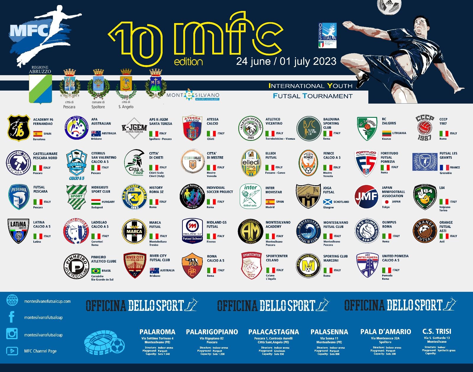 La decima edizione della Montesilvano Futsal Cup è patrocinata anche dalla regione Abruzzo e i comuni di Spoltore (PE) e di Città di Sant'Angelo (PE). Le finali di tutte le categorie si disputeranno il 29 giugno nello storico PalaRoma di Montesilvano.
