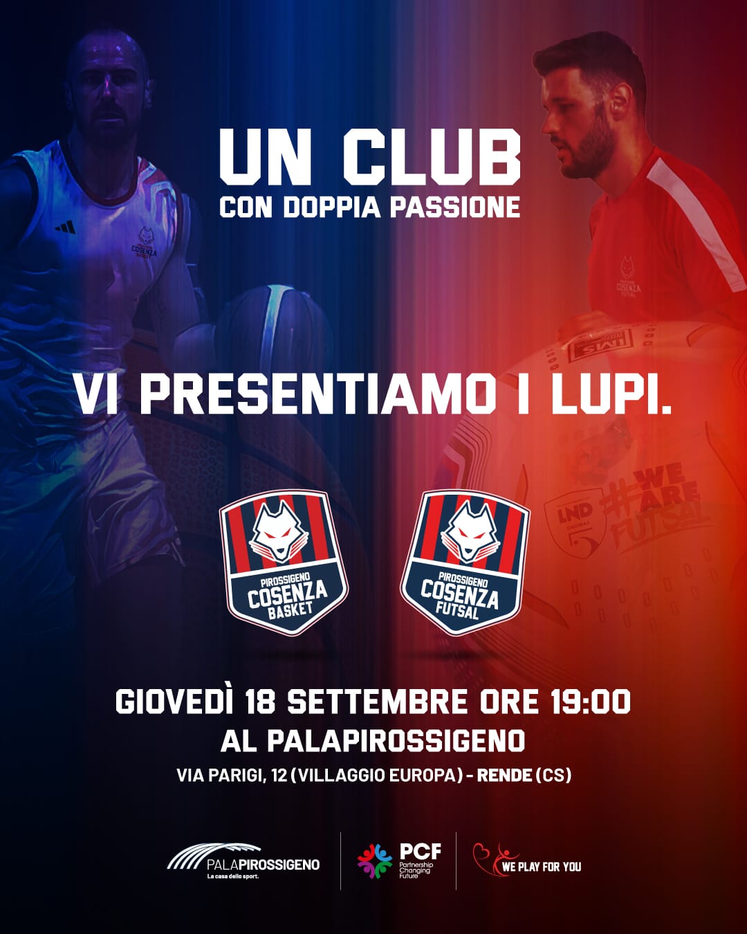 Nel corso dell'evento, verranno svelati gli assetti societari, lo staff tecnico e l'organico della neonata squadra di basket per la sua prima storica stagione 2025/2026, che la vedrà ai nastri di partenza del campionato di Serie D, e della squadra di futsal, alla vigilia della terza partecipazione consecutiva alla Serie A. Sarà anche l'occasione per parlare delle iniziative dei progetti We Play For You e Pirossigeno Changing Future, fortemente voluti dalla società per valorizzare il territorio e costruire una rete mirata ad ampliare le potenzialità delle eccellenze locali.