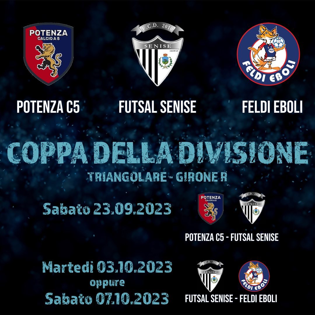 È stato diramato il programma del primo turno di Coppa della Divisione: il Futsal Senise è stato inserito nel Girone R con Città di Potenza e Feldi Eboli.