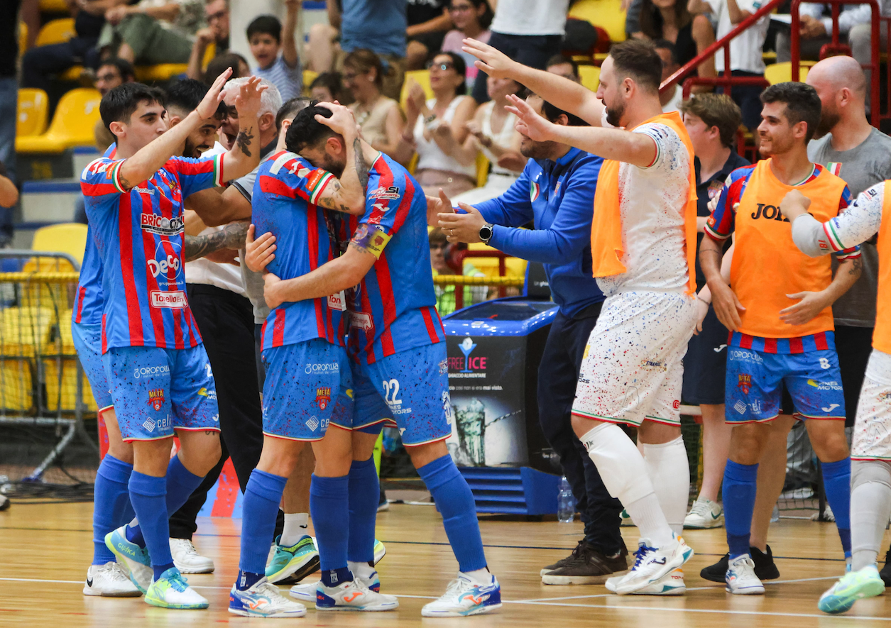Una gara-3 di semifinale palpitante, densa di emozioni, con tanti gol, tante espulsioni (ben sei, allenatori compresi!) con la Meta che sembrava avere in mano la soluzione vincente con tre gol di vantaggio a inizio ripresa ma che ha dovuto invece fare i conti con un Genzano indomito fino al fischio della sirena del secondo tempo supplementare. Finisce 8-5, Catania in finale per il secondo anno consecutivo e per il secondo anno consecutivo contenderà al Napoli lo scudetto, il 41esimo tricolore del futsal italiano.