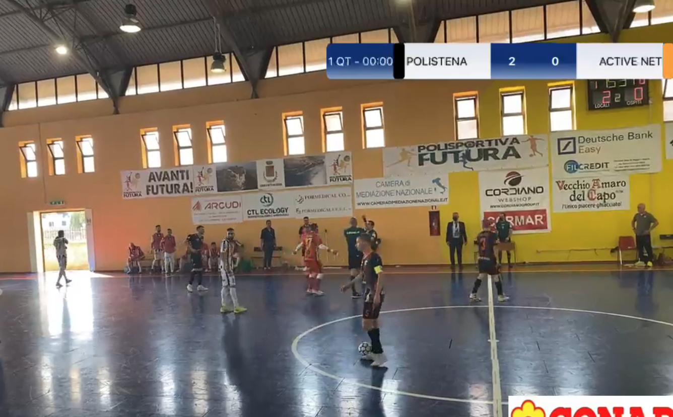 La rete realizzata galvanizza i pianigiani e Diogo da fuori fa le prove generali del gol, chiamando Bellobuono ad un intervento in due tempi. A 17’45’’ arriva il raddoppio e proprio l’ex Maritime sugli sviluppi di un calcio d’angolo, controlla e la fa passare sotto le gambe del portiere avversario. Active Network che crea le migliori giocate con Sachet, impreciso però quando a 1’28’’ dalla sirena timbra in pieno il palo a Martino battuto.
