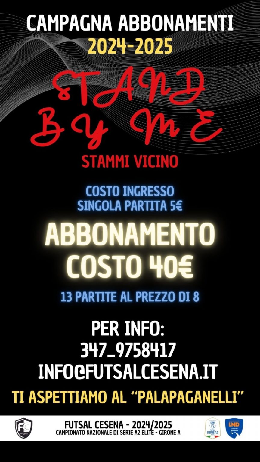 Per raggiungere i nostri obiettivi, ancora una volta, abbiamo bisogno di VOI e proprio per questo la società ha pensato di proporre un abbonamento con costo agevolato per poter assistere a tutte le gare interne che verranno disputate a Cesena. Così come lo scorso anno, per poter accedere alle gare casalinghe dei bianconeri, sarà possibile acquistare un biglietto dal costo di 5€ presso la biglietteria del “PalaPaganelli” prima del calcio d’inizio, mentre i ragazzi under 14 entreranno gratuitamente. La voglia di vedere il palazzetto carico di entusiasmo e di sostenitori ci ha portato a proporre un abbonamento per le 13 gare interne dal costo di 40€ (tredici gare, dunque, al costo di appena otto).