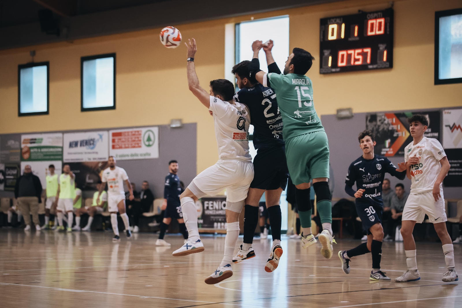 Il finale è ancora più incredibile: Fenice si riporta in zona d'attacco, guadagna una rimessa laterale a 0.5" dal termine: Difonzo serve Moscoso tutto solo che insacca. Il direttore di gara convalida la rete. Il Palafranchetti esplode prima di essere raggelato dal responso del cronometrista che annulla perché la sirena avrebbe suonato prima del tocco di Moscoso. Finisce 3-3 con tanto rammarico in casa Fenice per i 2 punti persi in maniera tanto rocambolesca.