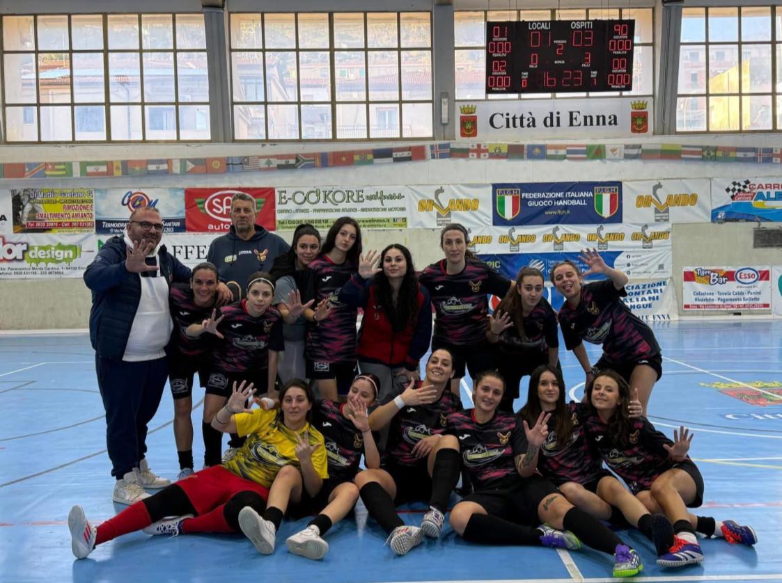 Nella quindicesima giornata del girone Enna del campionato regionale siciliano di Serie C femminile, rimane saldamente in vetta l’Agira C5 (nella prima foto di galleria) di coach Pirrone, che supera al Pala Don Pino Puglisi 6-1 l’AMO Gela grazie alla doppietta di Imbrosiano e ai gol di Balsamà, Dolica, Minnì e Scivoletto. Le agirine conservano cinque punti di vantaggio sulla seconda piazza occupata dall’Atlantide, che supera al Comunale di Troina 10-2 l’Ennese C5 con manita di Burrafato, la tripletta di Castro e i gol di L’Episcopo e La Ferrera. Al terzo posto rimane ben saldo il S. Sofia Licata (ha osservato il turno di riposo), +4 di vantaggio sull’Ennese C5, mentre chiude la zona playoff l’Armerina 2000 che, grazie al 3-1 contro il Don Bosco 2000 - doppietta di Zaccaria e gol di Illuminati - mantiene il quinto posto a quota 19.