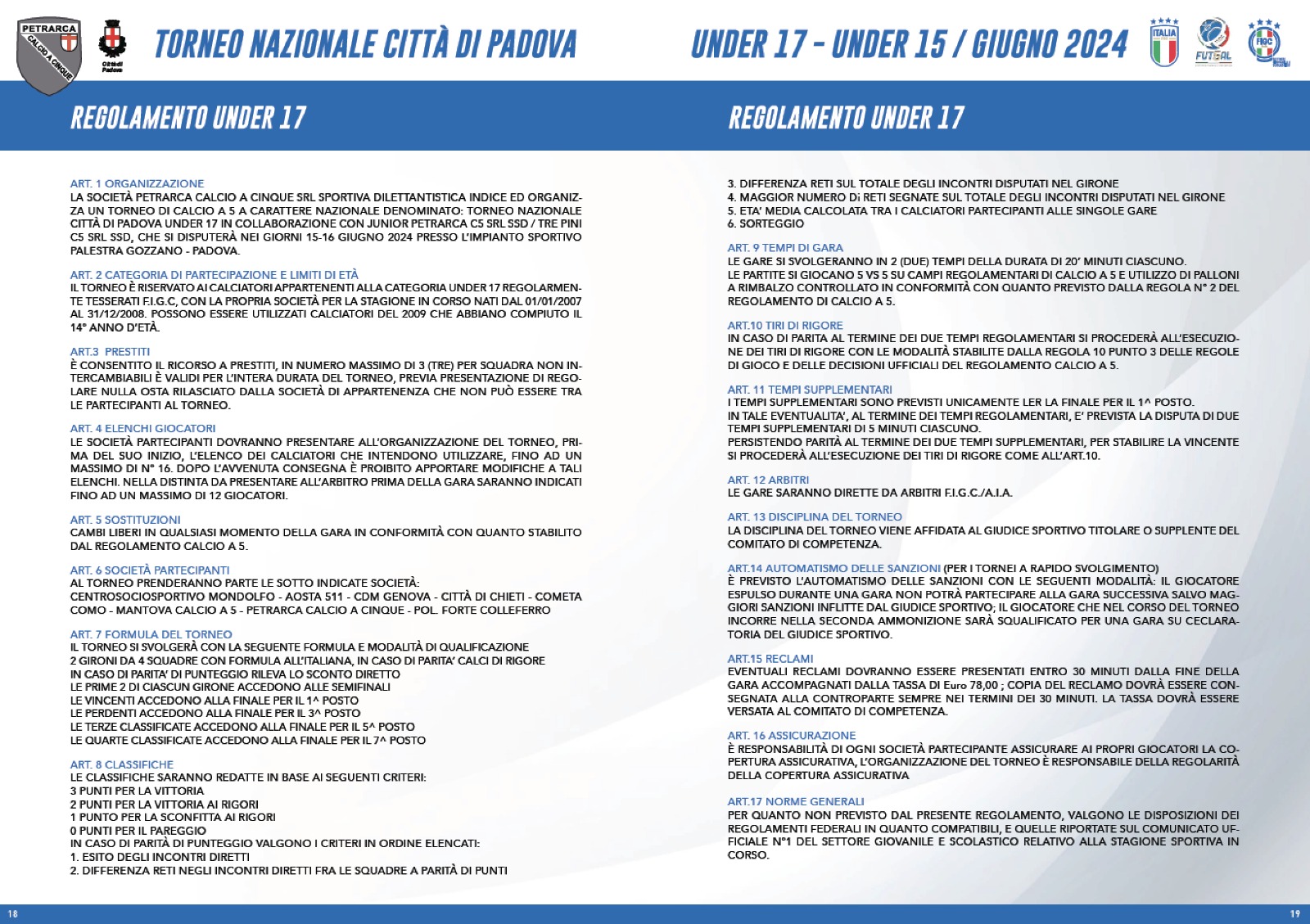 La quinta edizione del Torneo Nazionale “Città di Padova” Under 17 è volta al termine. Ad alzare la coppa è stato proprio il Petrarca organizzatore del torneo, al suo primo successo nella kermesse patavina. In finale è stato battuto per 2-0 con doppietta di Manuel Medea un Forte Colleferro da applausi, giunto dal Lazio in Veneto con solo sette effettivi. Procediamo quindi con il racconto di quella che è stata la giornata conclusiva, partendo dalle ultime sfide dei gironi arrivando fino alle finali per determinare la graduatoria del torneo.